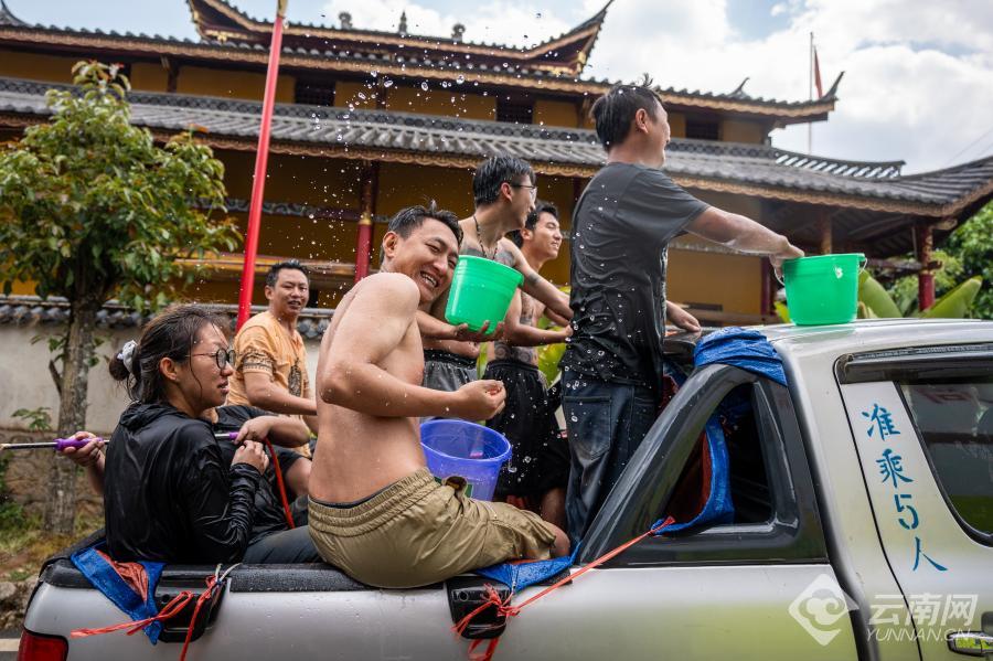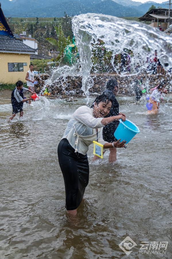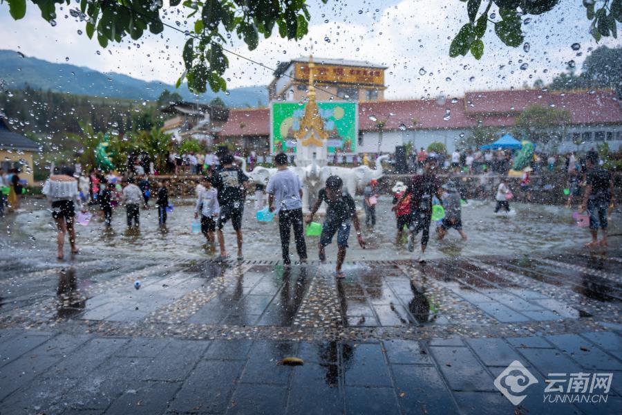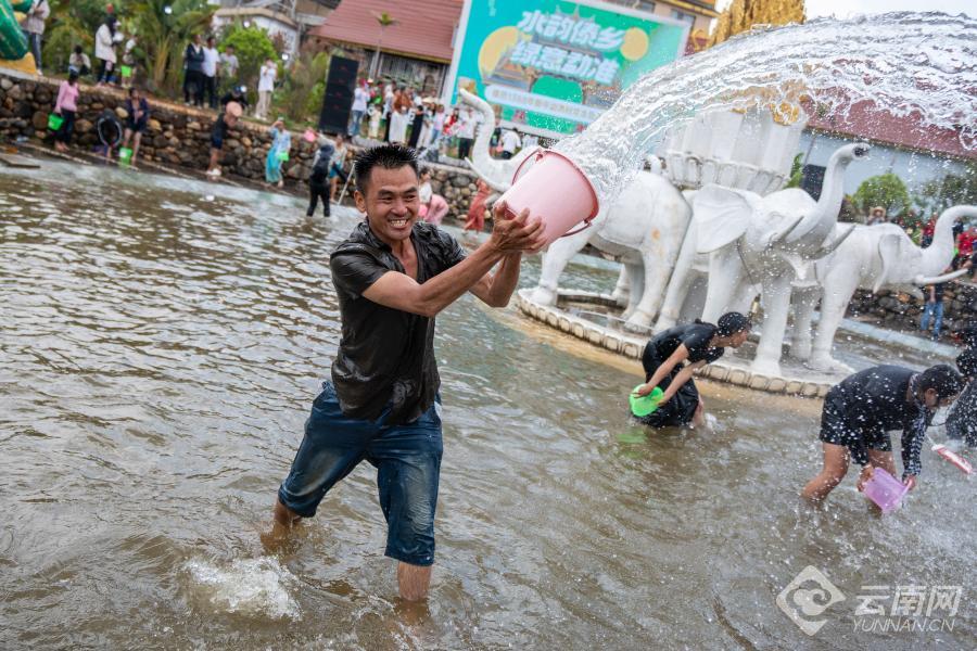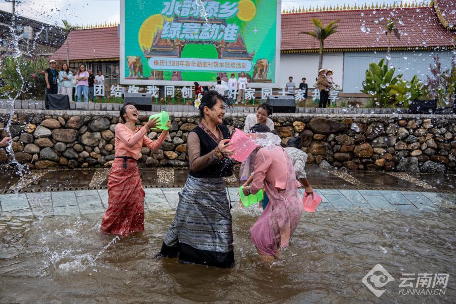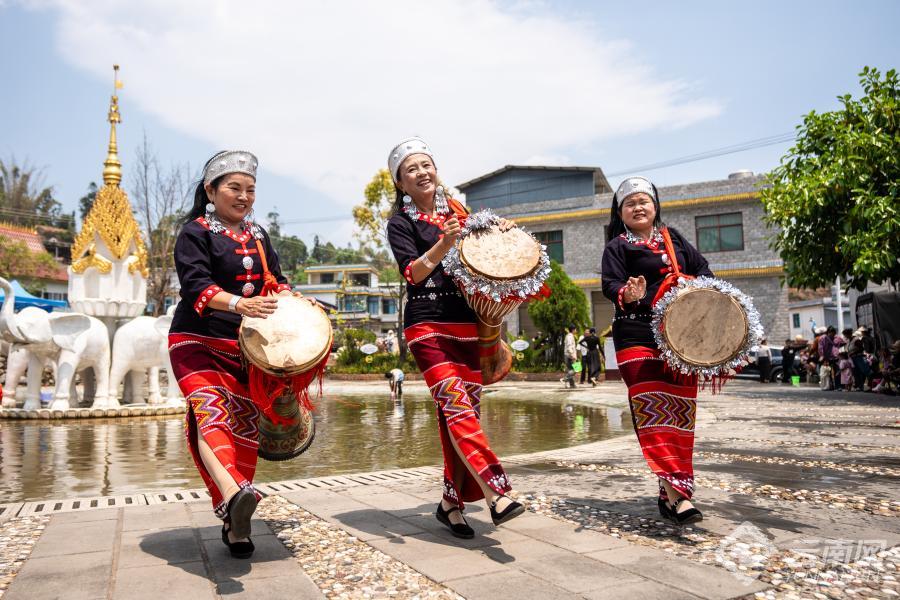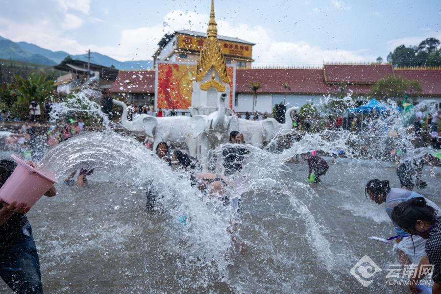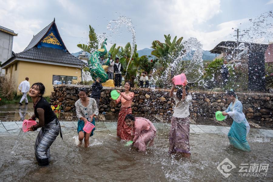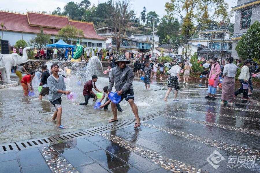 4月16日,临沧市临翔区博尚镇大勐准村热闹开启傣历新年泼水节狂欢活动,以清水送福、歌舞传情,尽显傣乡民俗魅力。
