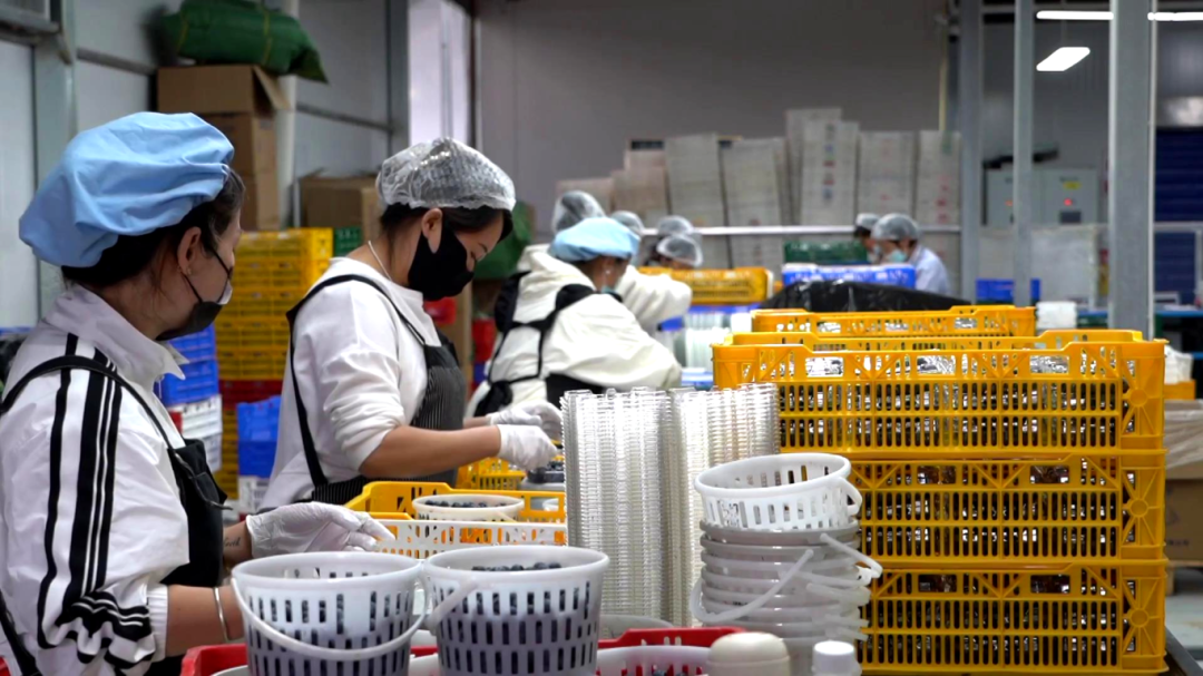 产销两旺的背后,是高效有序的分工协作。四大基地均配套设有包装车间,每天有420名工人各司其职、协同发力,精准完成蓝莓筛选、打包等环节,全力保障每天50吨新鲜蓝莓顺利发往全国各地,让宾川蓝莓的清甜直达千家万户。