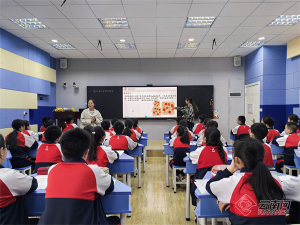云南网讯(记者 杨苑 通讯员 缪玲雯)为充分发挥党建引领教育教学的核心作用,破解小初数学教学衔接痛点,搭建校际教学交流互通平台,助力中小学数学教学协同提质,近日,昆明市盘龙区东庄小学与昆明市实验中学联合开展小初衔接数学主题联合教研活动。本次教研以《数与形》教学为抓手,聚焦学段衔接、思维进阶,推动两校数学教学深度融合,切实以党建赋能教育教学高质量发展。