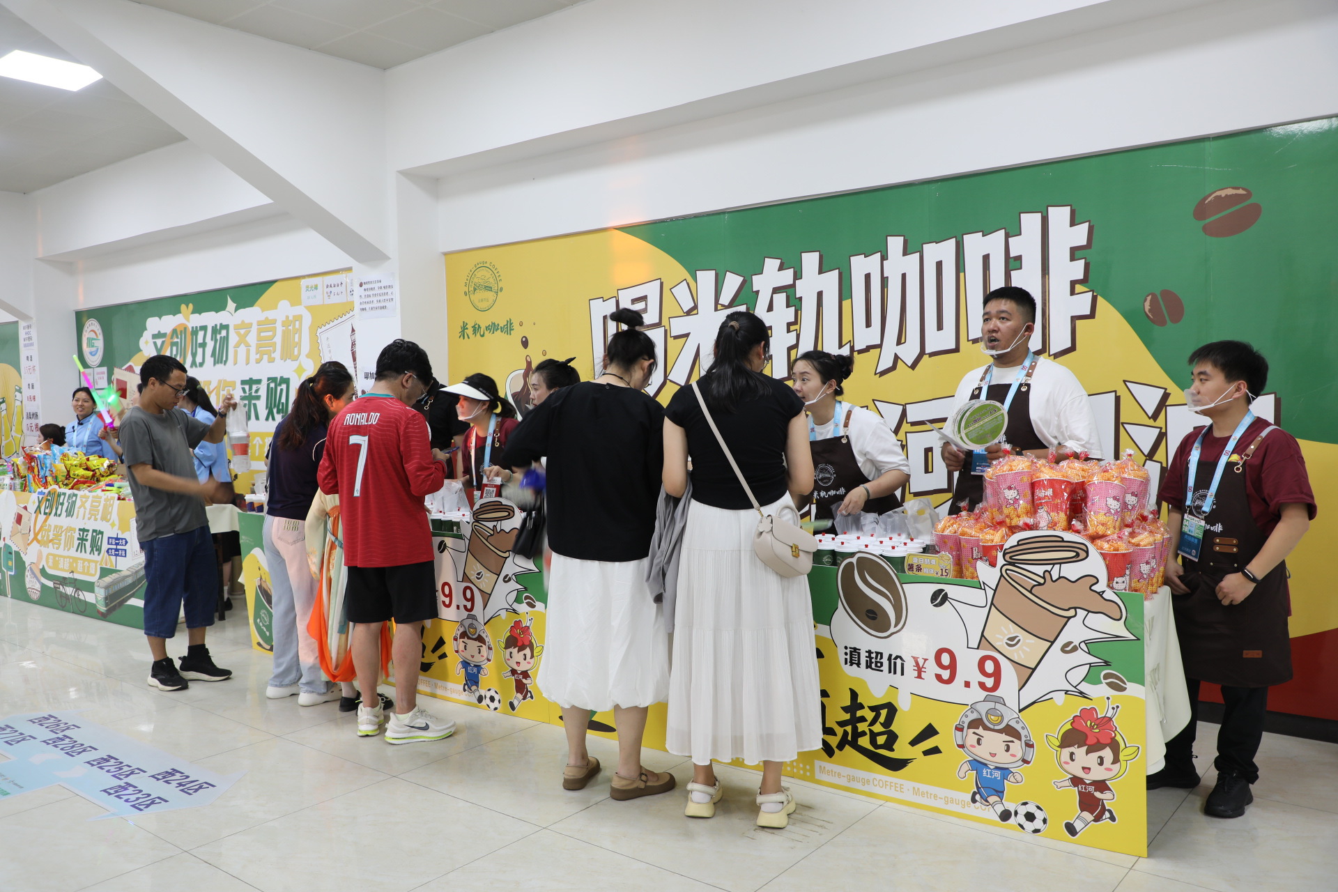 当人群开始如潮水般涌向检票口,体育馆内的“第二消费场景”早已准备就绪——“滇超加油站”柜台前,清凉饮品成为刚需。经典的南疆白柠檬、米轨咖啡销售火爆,新推出的玫瑰水、文创冰棍等新品也备受青睐。粗略统计,各类饮料当天售出超8000杯。