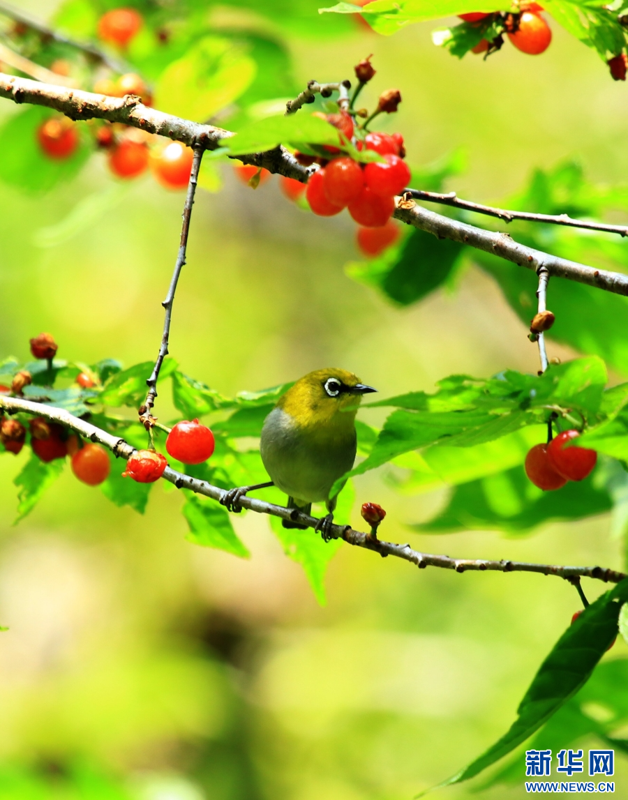 原标题:云南腾冲:绣眼鸟化身“尝鲜员”啄食春日樱桃