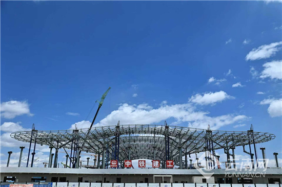 塔吊舒展长臂,机械低鸣共振,钢结构在阳光下勾勒出未来空港轮廓。今年以来,昆明长水国际机场改扩建工程快速推进,T2航站楼的宏伟轮廓正加速成型。