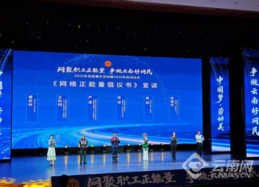 1月27日,“网聚职工正能量 争做云南好网民”2025年总结展示活动暨2026年启动仪式在昆明市工人文化宫职工剧场举行。
